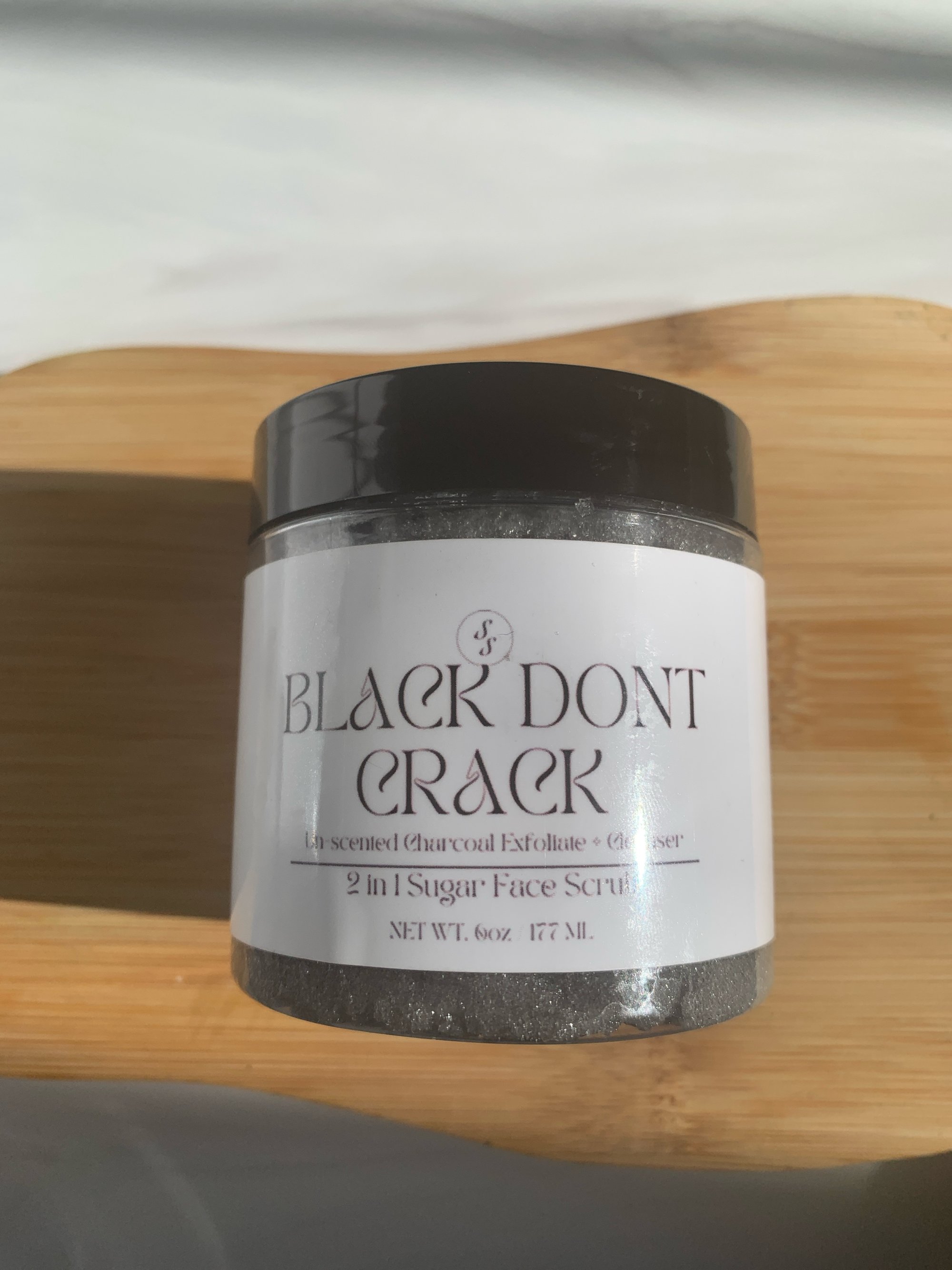 A cleansing charcoal exfoliating face scrub handcrafted with sugar, charcoal, grape seed oil, and avocado oil perfectly made for all skin types! Best for people trying to REDUCE PORES & ACNE