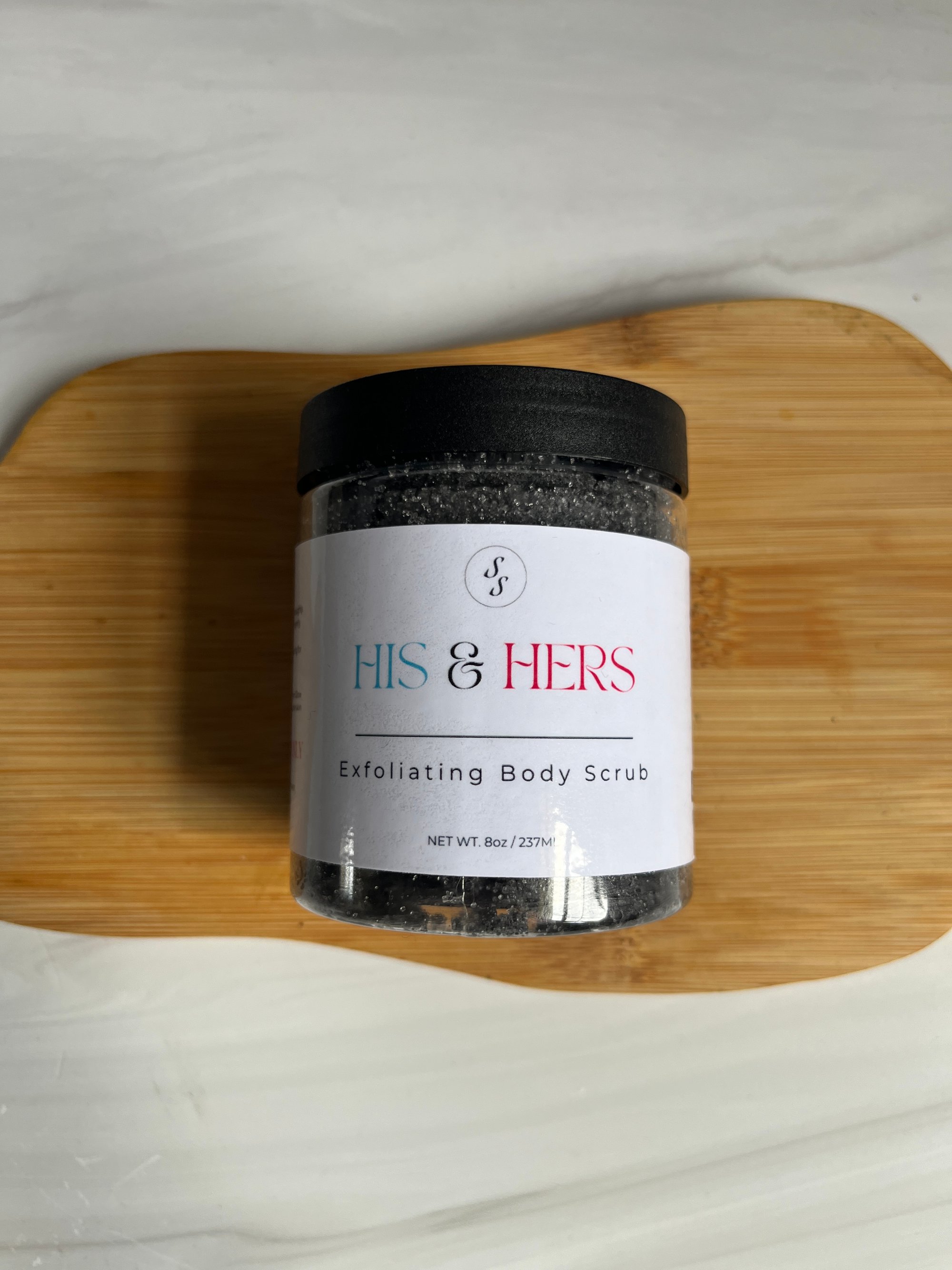 A unisex, charcoal body scrub handcrafted with sugar, activated charcoal, coconutoil, + an essential oil blend.